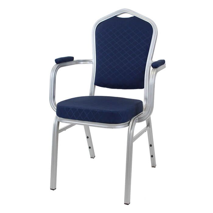 Diamond Aluminium Stacking Chair Blue Fabric Silver Frame With Arms
