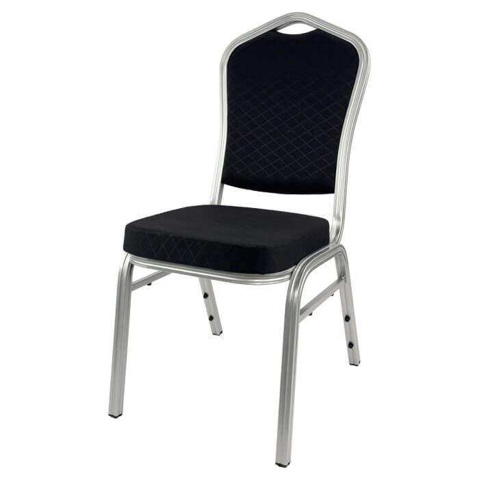 Diamond Aluminium Stacking Chair Black Fabric Silver Frame