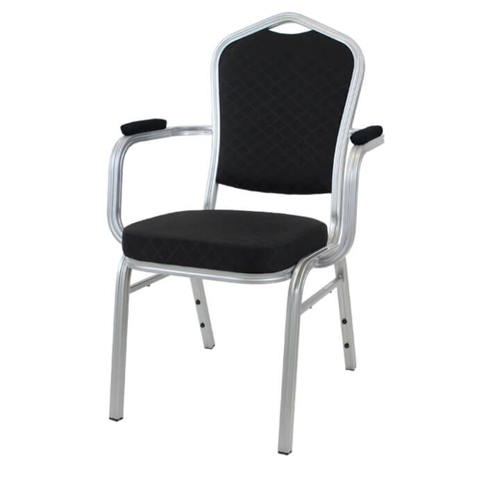 Diamond Aluminium Stacking Chair Black Fabric Silver Frame With Arms