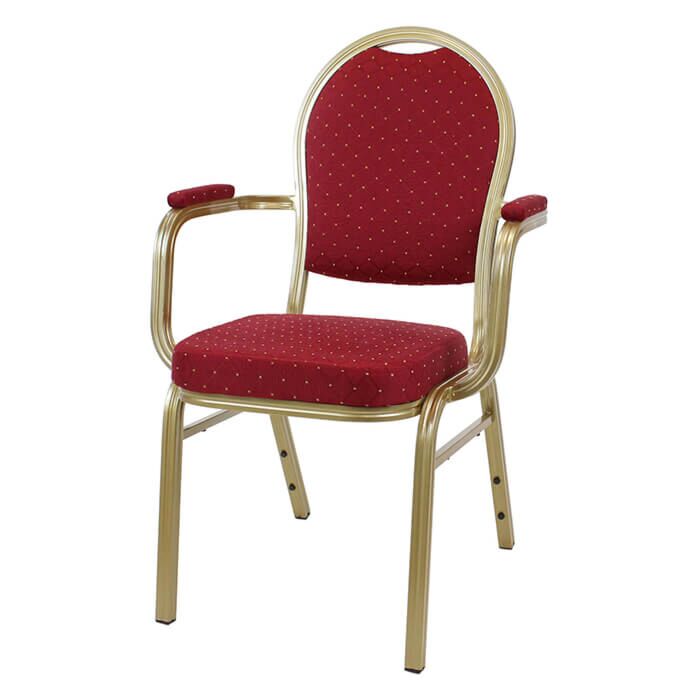 Round Back Aluminium Banqueting Chair Red Fabric with Arm Rests