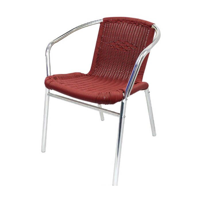 Aluminium Stacking Chair with Red Wicker Seat and Back