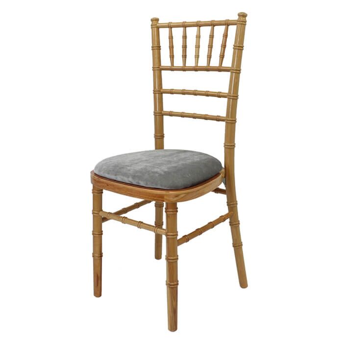 The Natural Chiavari is a staple in the event furniture community. It is a great choice for an assortment of venues; whether you are looking to have a simple event or go all out, it is sure to meet your expectations. A great piece of furniture that can be attributed to its lightweight design and 10 high stacks. An optional choice of seat pad with 7 colour choices is sure to match your colour theme. Our Chiavari stacking chairs are a great choice when used with one of our wooden banqueting tables, catering tables, or plastic folding tables.