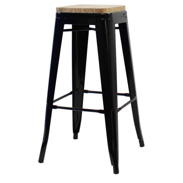 The Gloss Black Tolix-inspired Bar Height Stool with Wooden Seat is a great addition to our Tolix range. Perfect for restaurants, bars, and hotels, the low Tolix bar stool is becoming very popular here in the UK. Available in a wide range of colours and styles, it is the perfect addition to any area of your business.