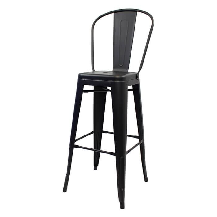 Tolix Style 76cm Bar Height Stool with Tall Back Rest - Matte Black