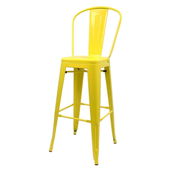 Tolix Style 76cm Bar Height Stool with Tall Back Rest - Yellow