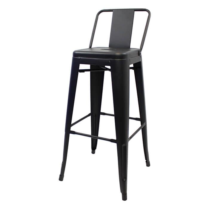 Tolix Style 76cm Bar Height Stool Low Back - Matte Gun Metal