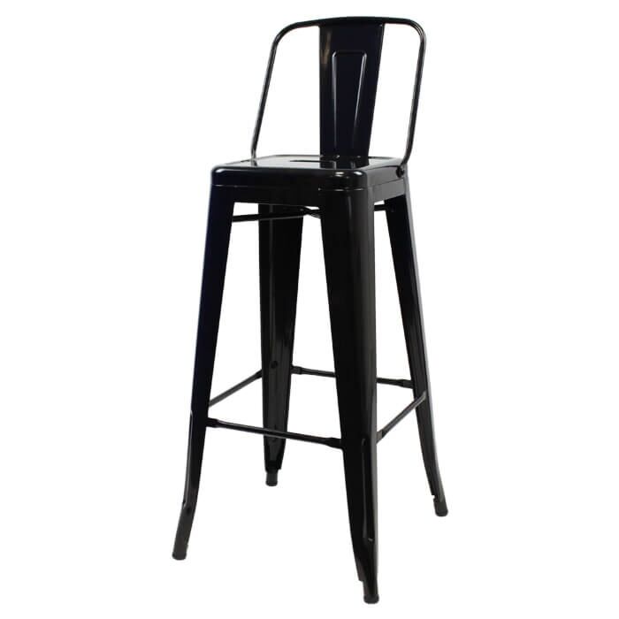Tolix Style 76cm Bar Height Stool Low Back - Gloss Black