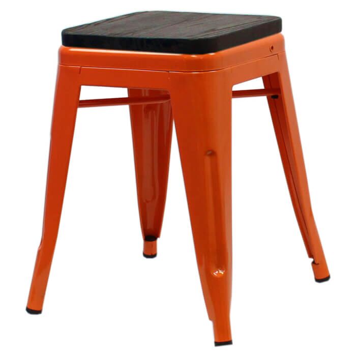 Tolix Style 46cm Low Stool Orange with Wooden Seat
