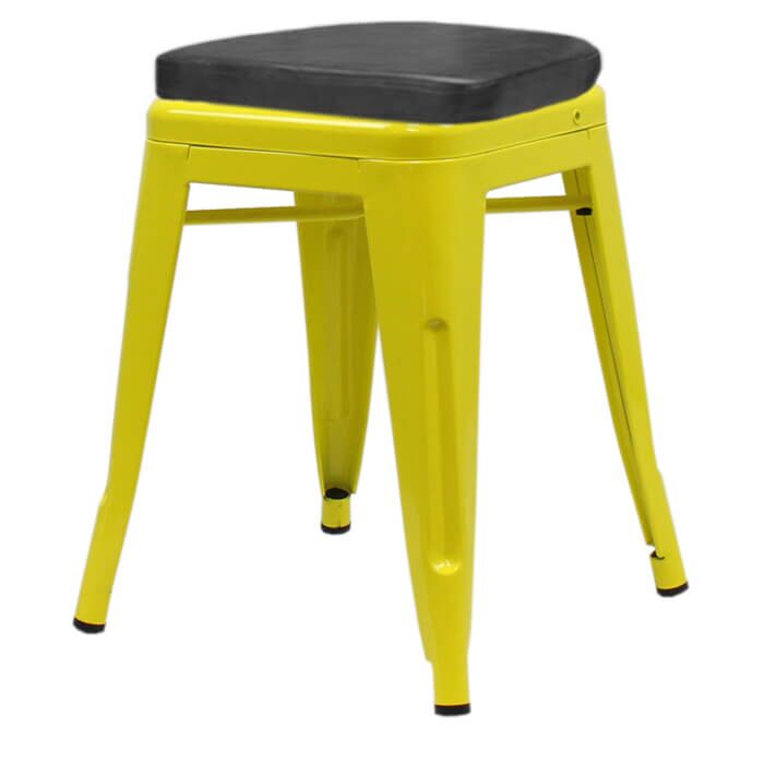 Tolix Style 46cm Low Stool Yellow with Upholstered Box Seat