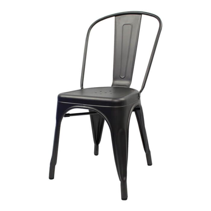 One of our more popular selling bistro chairs, the Tolix-inspired Side Chair, offers a raw varnished finish, which gives the chair its industrial quality. This finish most reflects the age of the design and sits comfortably next to all surfaces. The industrial finish is seen in the slight differences in colour due to the variations in the original metal sheet. In addition, the welds and joins used to assemble the chair can be seen under the varnish, which all adds to the industrial look of the chair.