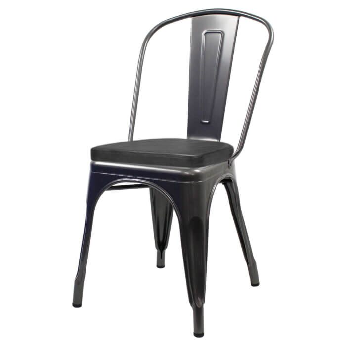Tolix Style Side Chair Gloss Gun Metal with Upholstered Box Seat