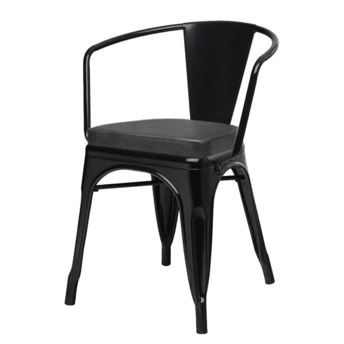 Tolix Style Armchair Gloss Black Upholstered Box Seat